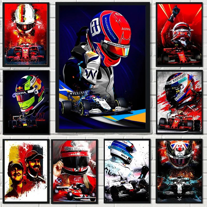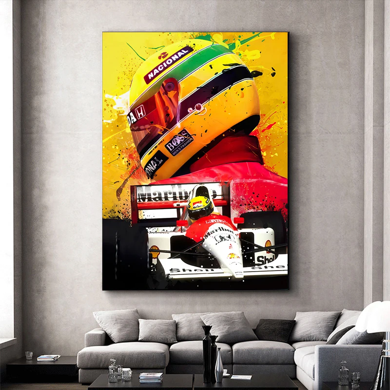 F1 плакат, принты, современный красный автомобиль, гонщик Айртон, абстрактные картины на холсте, домашняя масляная живопись, настенное искусство, декор для гостиной, модульный