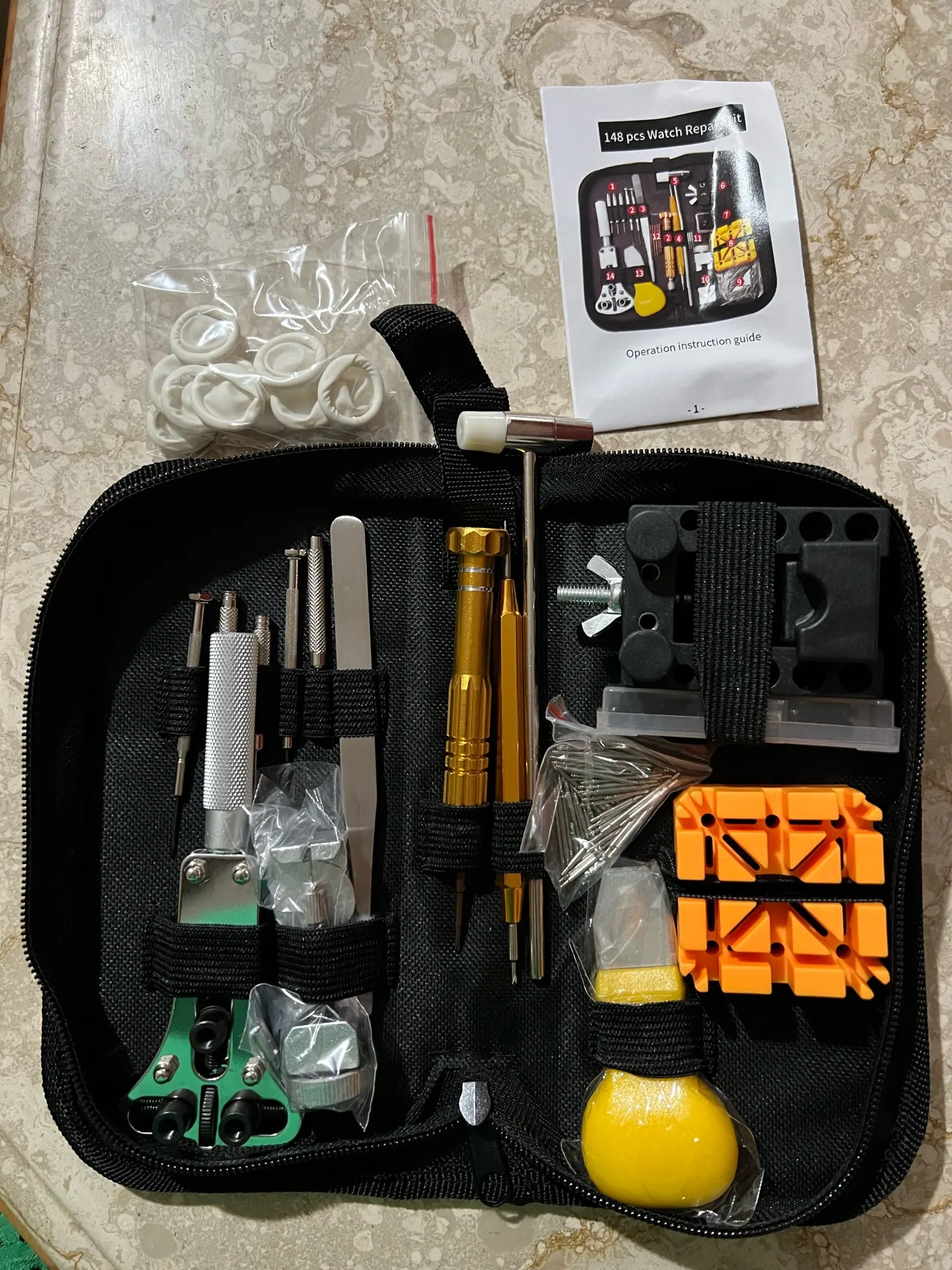Товаром доволен. Качество хорошее. Пенал только воняет синтетикой, но должно выветриться. Доставка в Москву быстрая , около 7-10 дней. Набор из 157 предметов для несложного ремонта часов, замена ремня, батарейки и т.п. Для ремонта механизма не годится, мало отверток и все они слишком крупные.