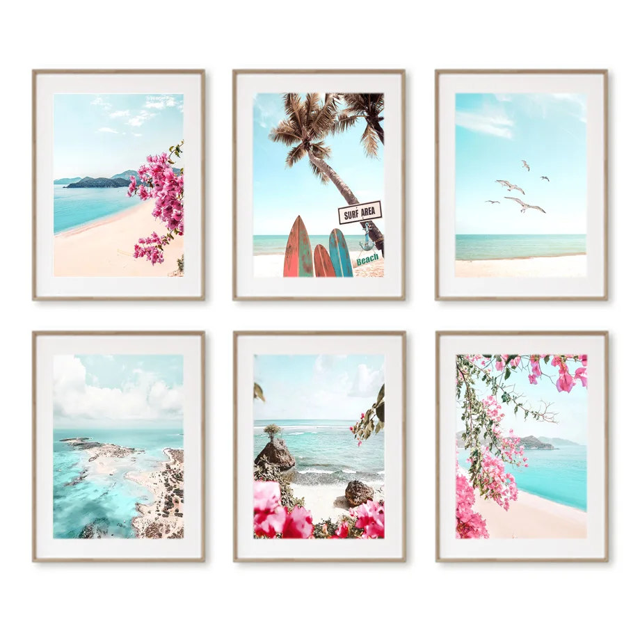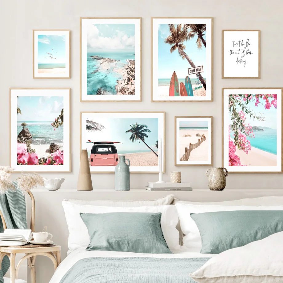 Цветочный морской пляж риф пальмовое дерево Цитата пейзаж скандинавский настенное Искусство Холст Живопись постер и принты картинки для декора гостиной