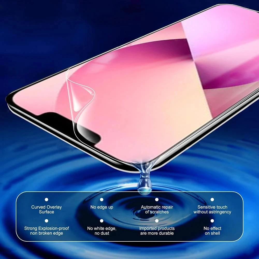 Особенности:-Новая Гидрогелевая мягкая пленка обеспечивает высокую защиту вашего экрана.-Гидрофобное и олеофобное покрытие защищает ваш телефон от пятен, таких как масло, отпечатки пальцев и т. д.-Супертонкий и прозрачный дизайн гарантирует HD просмотр.-Высокая чувствительность и отклик, как и оригинальный экран-Царапины на экране естественным образом восстановятся, чем тоньше, тем быстрее-Значительно увеличивает прочность экрана, не нужно беспокоиться о том, что экран хрупкий для ежедневного использования-Гидрогелевая мягкая пленка является самой защитной пленкой на экранах рынка.