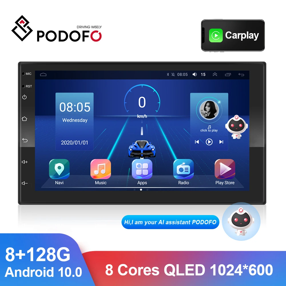 Podofo автомобильное радио Android 10,0 8G 128G 2 Din Android Auto Carplay AI Голосовое управление Wifi 4G Универсальный 7-дюймовый автомобильный мультимедийный плеер