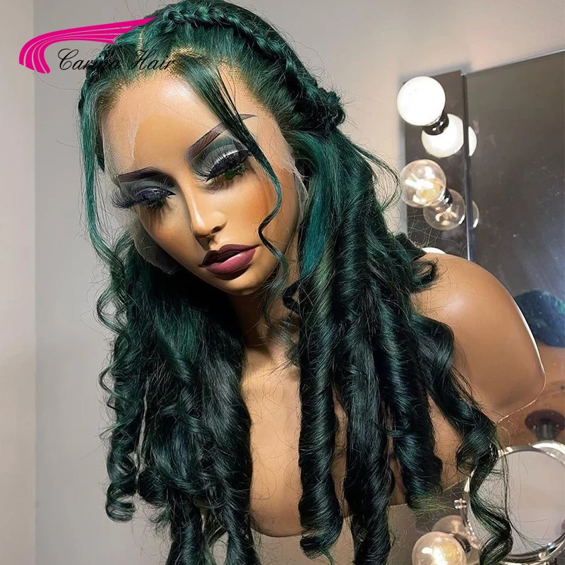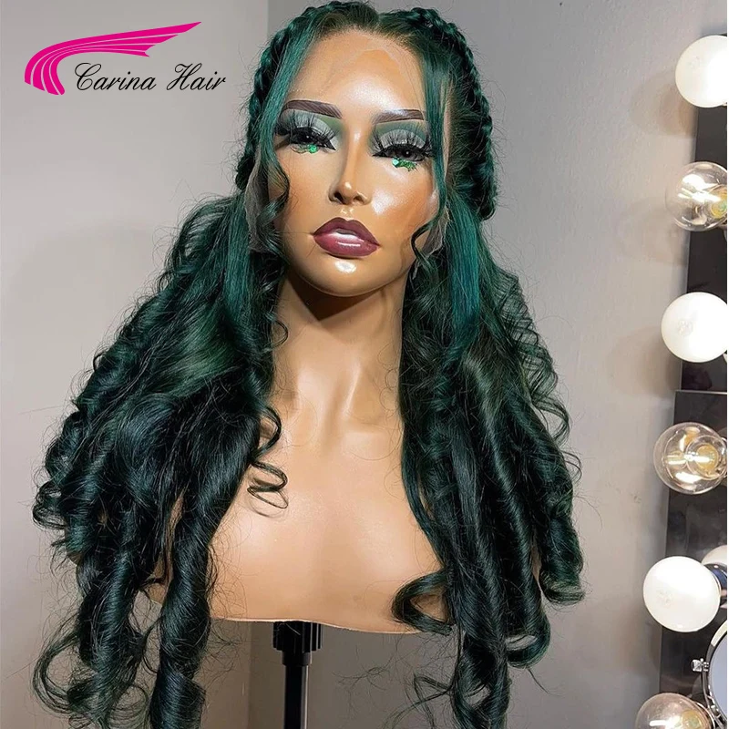 Topnormantic темно-зеленый цвет тела волны парики Preplucked Hairli...