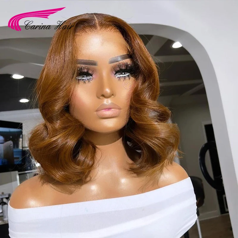 Волнистые человеческие волосы оранжевого цвета 13x4, парики на сетке спереди, плотность 180 для женщин, бразильские парики на сетке Remy 4*4, предварительно выщипанные