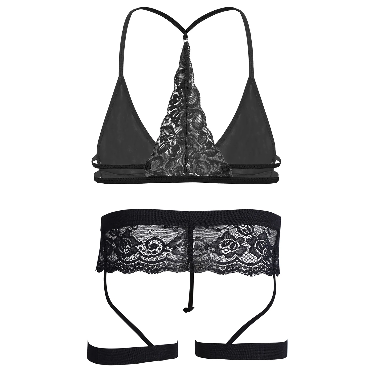 Комплект кружевного нижнего белья для мужчин, трусы и бюстгальтер с подвязками, экзотическое нижнее белье, трусики-Трансвестит, одежда для сна
