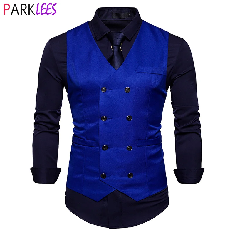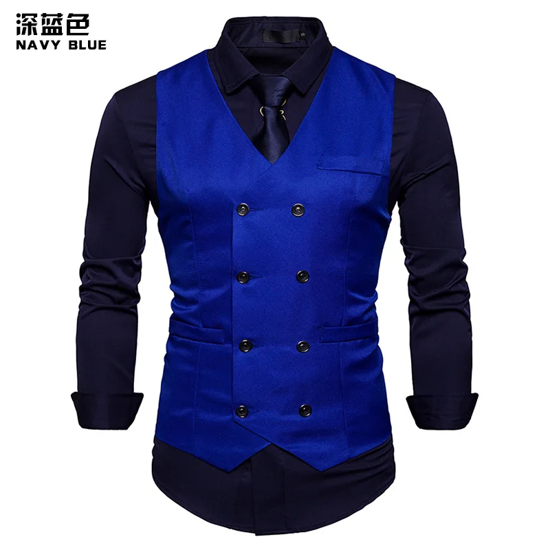 Королевский синий двубортный жилет для мужчин 2022 Весенний Новый Приталенный жилет без рукавов мужской деловой Свадебный костюм жилет Мужской 2XL
