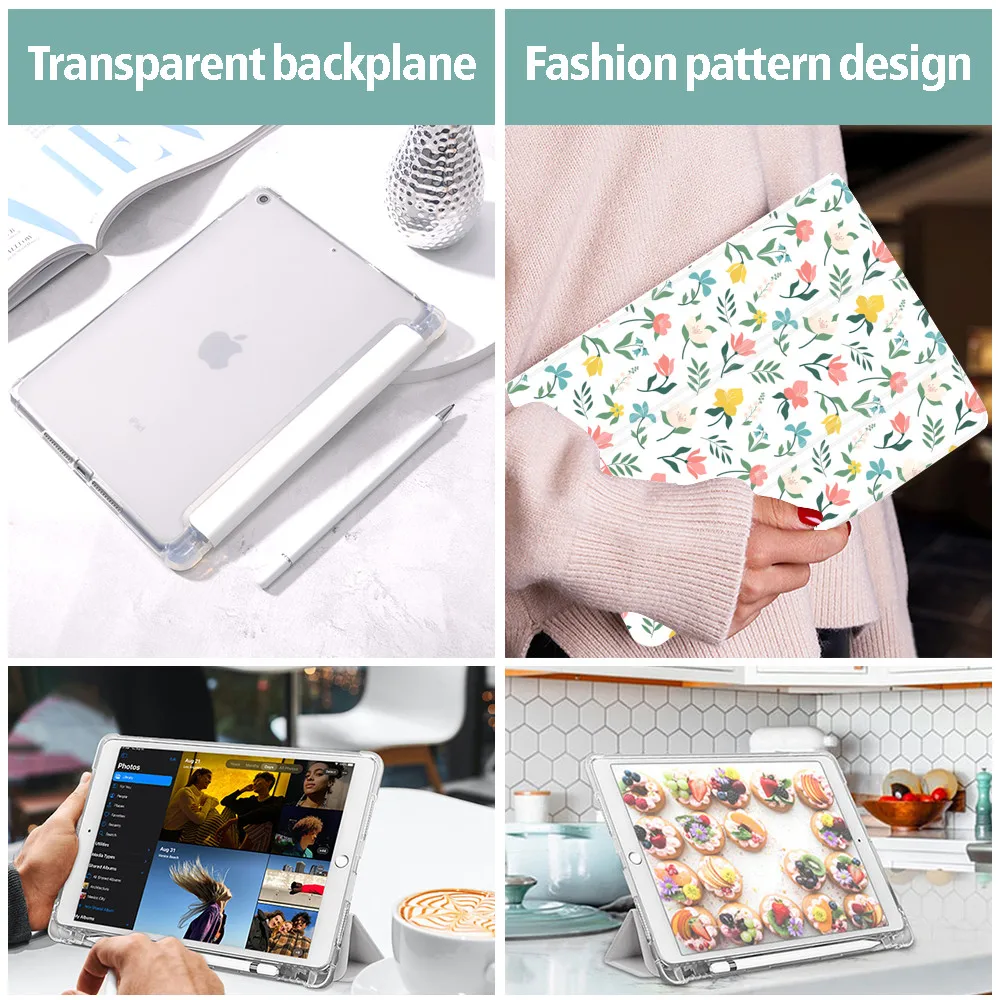 Чехол с цветами для ipad Air 4, с держателем для карандашей, 10,2 д...