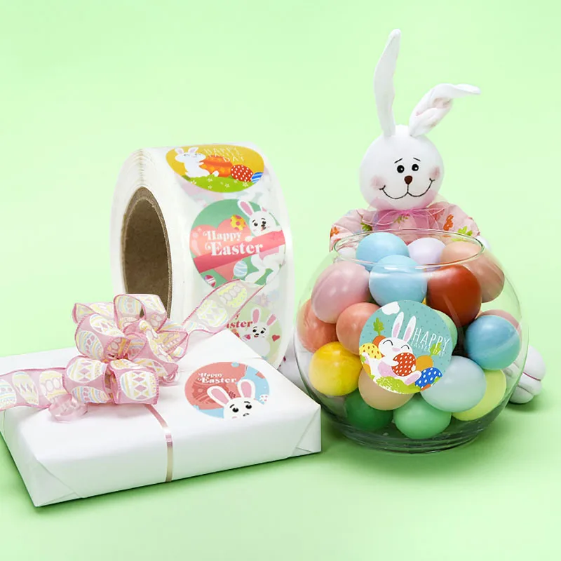 500 шт. 2,5 см счастливая Пасхальная наклейка s яйцо Кролик мешочек конфет наклейка самодельная этикетка Скрапбукинг пасхальвечерние НКА детский подарок украшения бирка