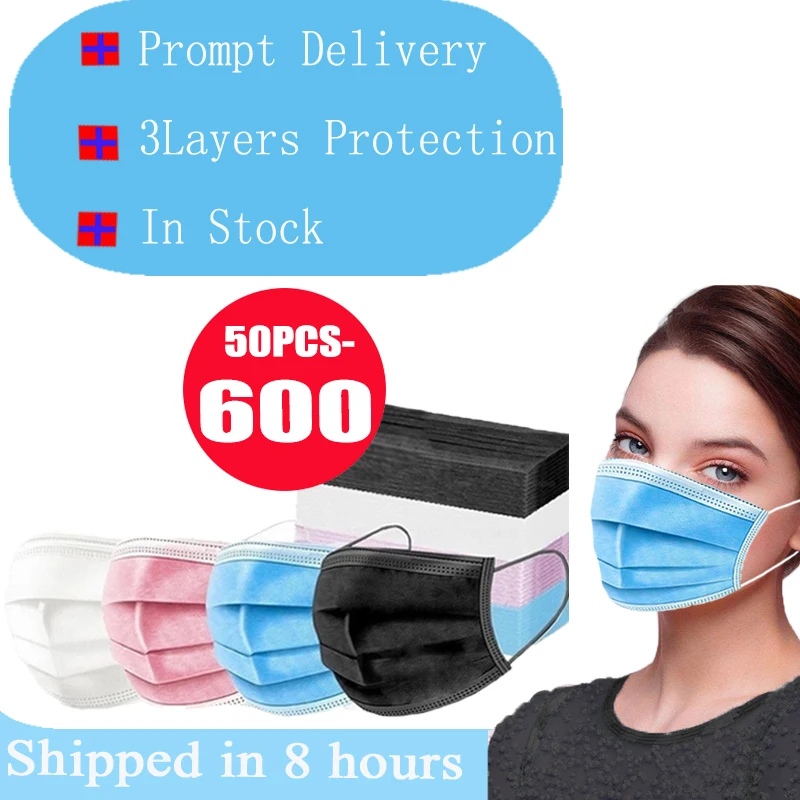 50-600 шт. медицинская одноразовая хирургическая маска для лица Нетканая 3-слойная фильтрующая Пылезащитная маска с фильтром безопасная дышащая Черная защитная маска