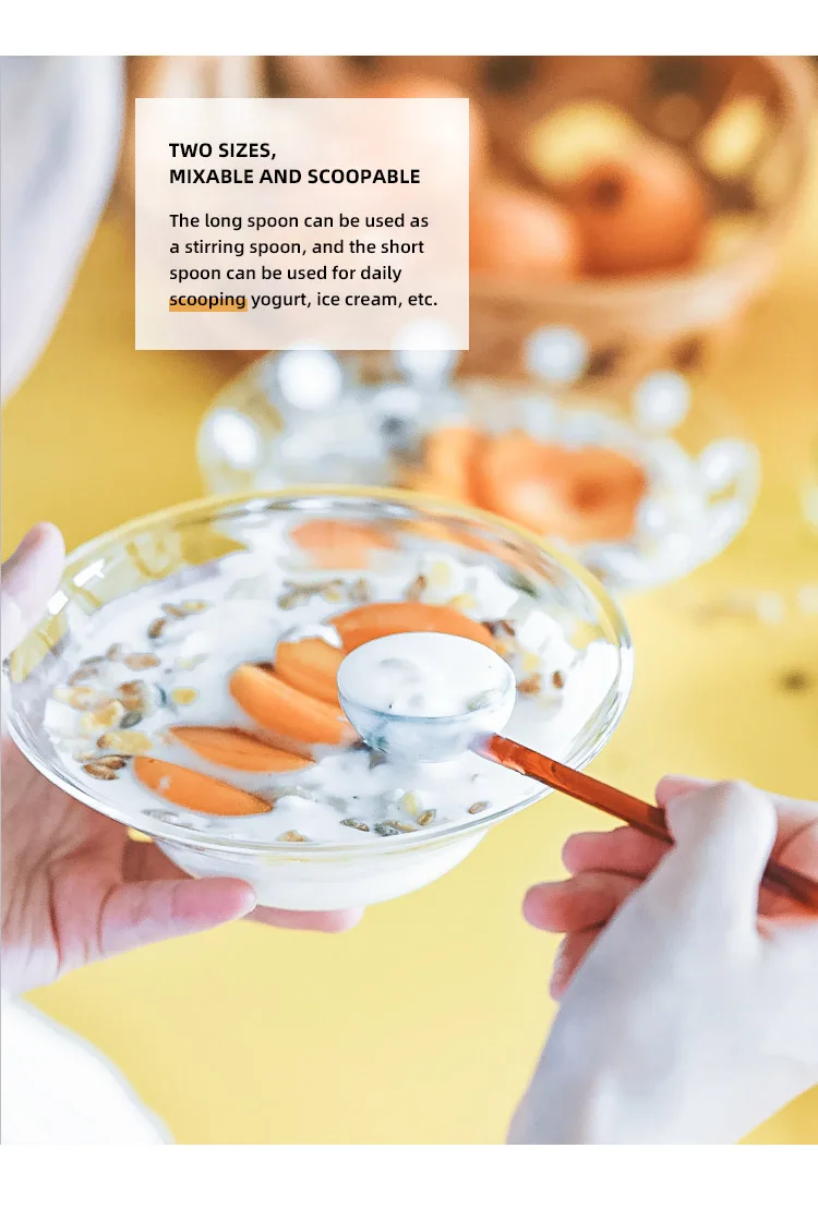 3. Длинная Ложка Может использоваться в качестве перемешивающей ложки, а короткая ложка используется для ежедневного перекуса йогурта, мороженого и т. д.