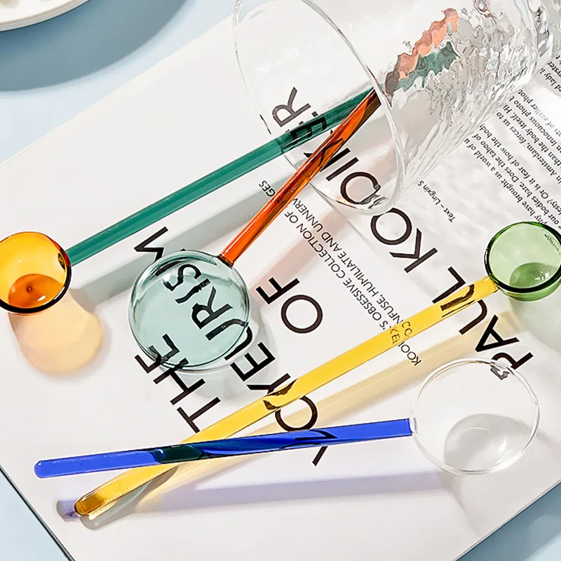 Ложка-мешалка радужного цвета для кофе, чая, сока, с длинной ручкой, прозрачные Десертные Ложки для мороженого, стеклянная посуда, кухонные принадлежности