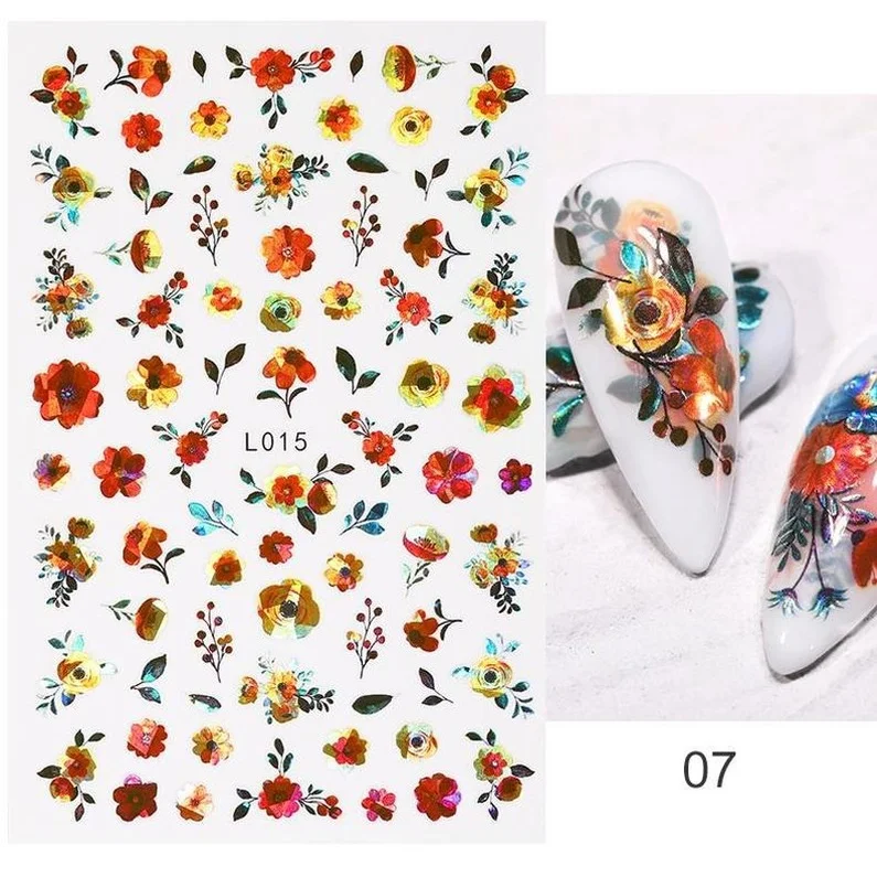 Голографические 3D наклейки для ногтей, 1 шт., цветы, листья, узор,...