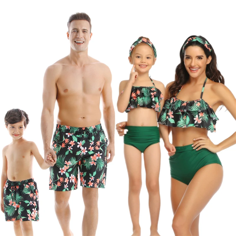 Купальники для мальчиков и девочек, семейные, с цветами, бикини, пл...