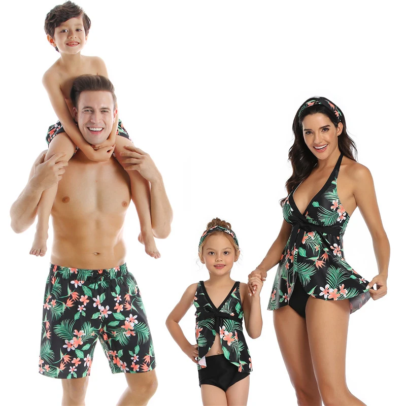 Подходящие купальники для всей семьи; Одежда для мамы и дочки; Купальный костюм с принтом в виде листьев; Платье-бикини для мамы и меня; Одежда для папы и сына; Одежда для плавания