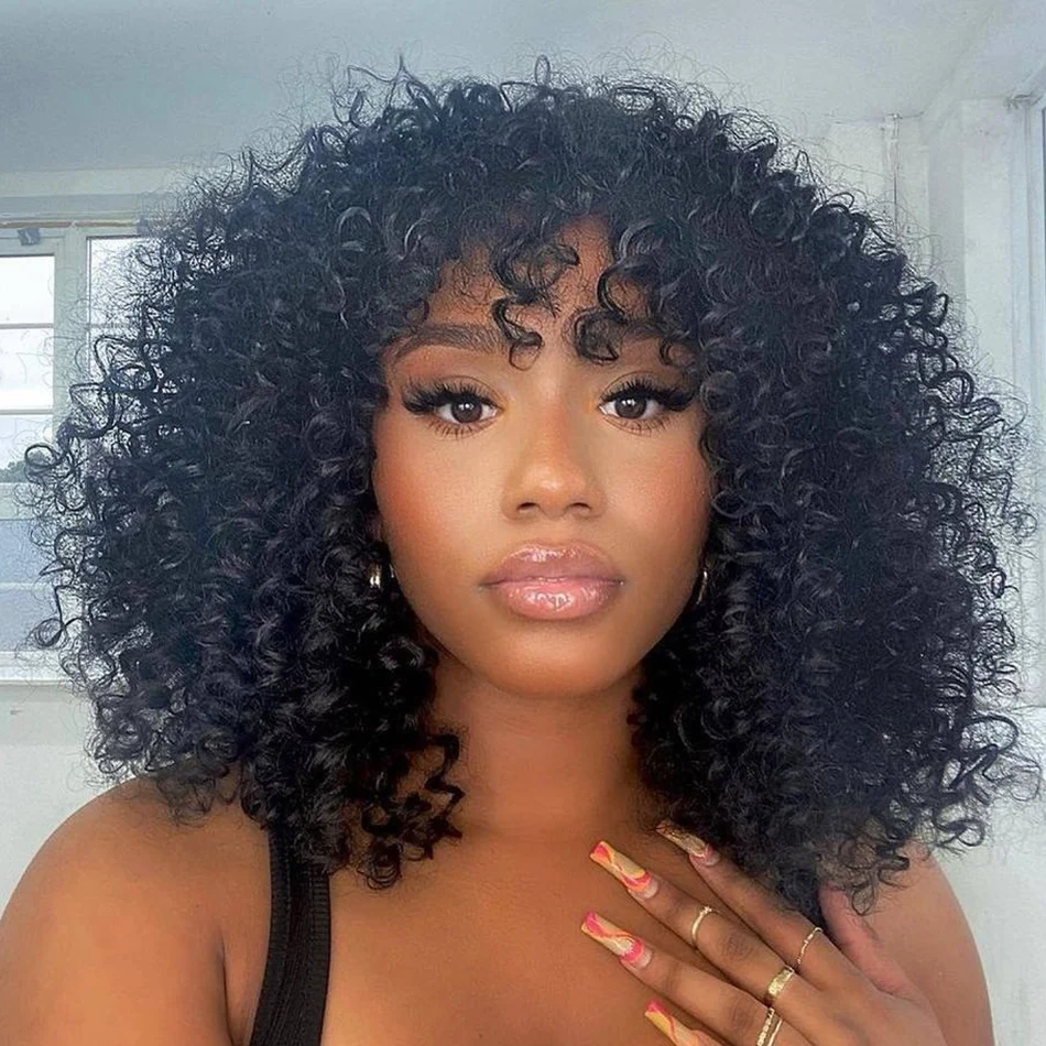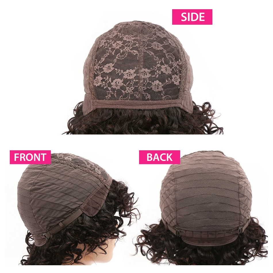 Парик Luvin с коротким Бобом машинной работы, с челкой, парики из человеческих волос, парик с глубокой волной и кудрявой челкой для женщин, парики без клея, Remy