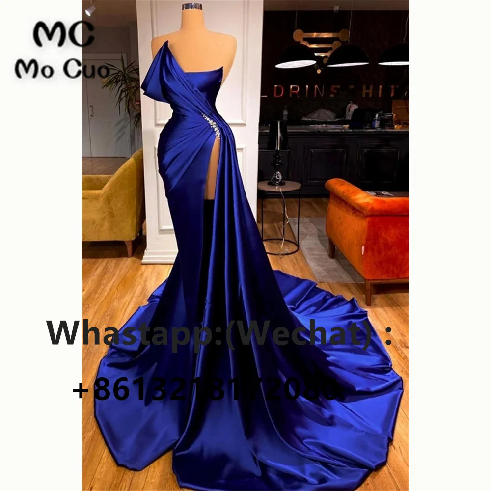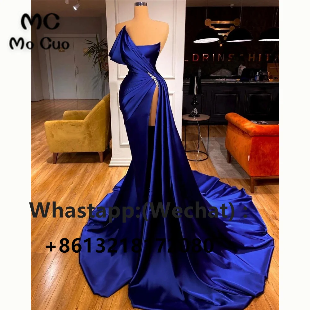 Женское длинное вечернее платье Royer, синее шелковое атласное платье с оборками, плиссированное платье для выпускного вечера, 2022
