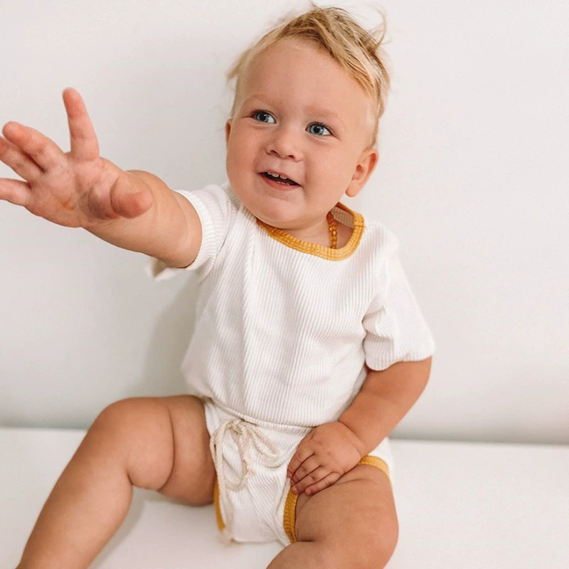 2022 летняя Корейская одежда для младенцев, модные хлопковые шорты в рубчик для мальчиков и девочек, рубашка с коротким рукавом + цветка, горячая распродажа