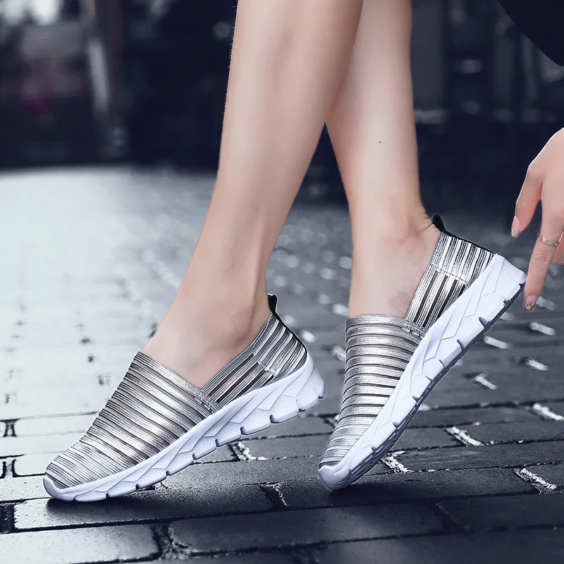 Роскошные блестящие туфли Susugrace для женщин, золотистые, серебристые летние туфли на плоской подошве, женские повседневные Модные Легкие уличные женские туфли для спортзала