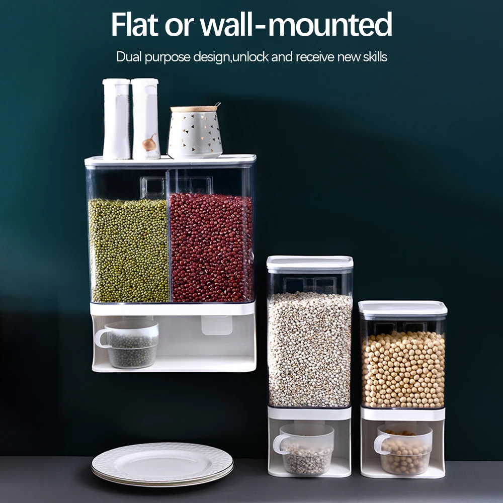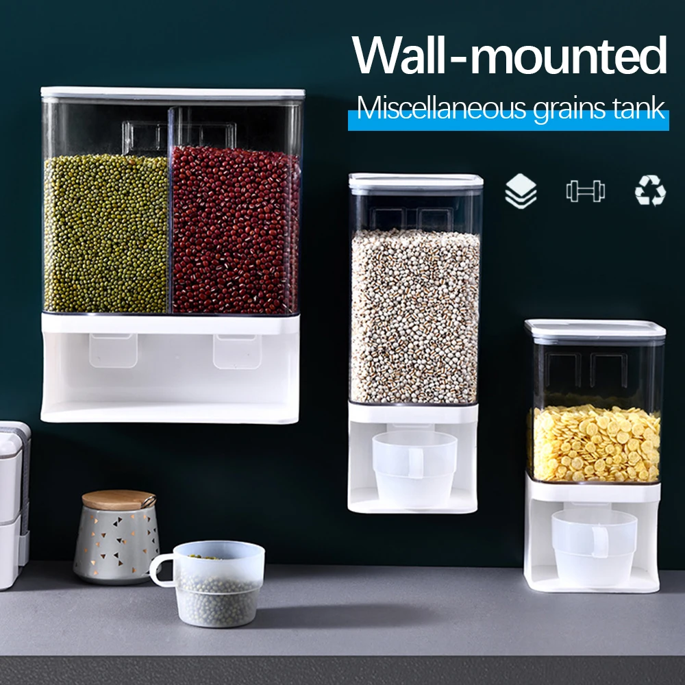 1/1.5/3L Крупы диспенсер Пластик прозрачный настенный разделены риса сухой Еда контейнер для хранения Организатор для дома Кухня