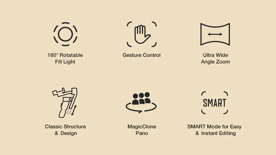 "Все, что вы хотите в ПАНОРАМЕ, SMOOTH-Q3 получил его: Ландшафтный режим, режим портрета, фронтальная и задняя камера, 180 °, 240 °, 3X3...* Управление жестами поддерживается в ПАНОРАМЕ"