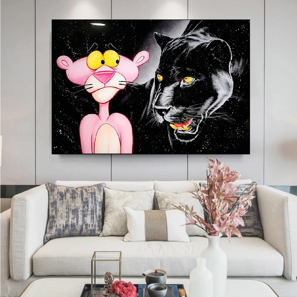 Алмазная 5D картина Disney, рисунок Розовая пантера и черный леопард, граффити, искусство сделай сам, полная вышивка, мозаика, украшение для дома