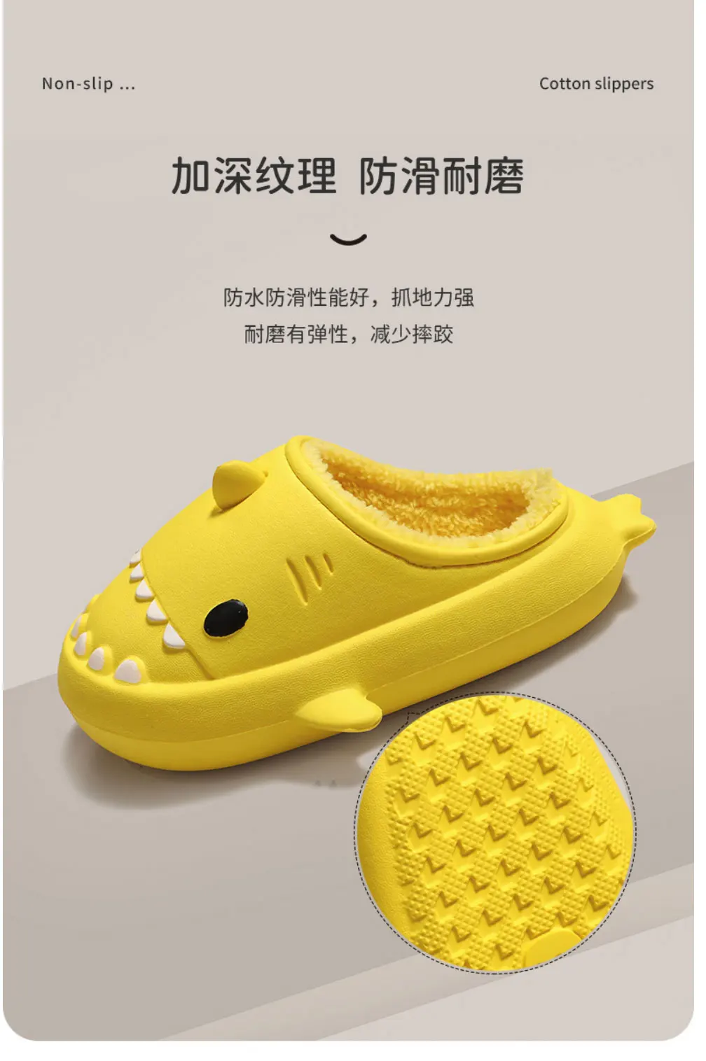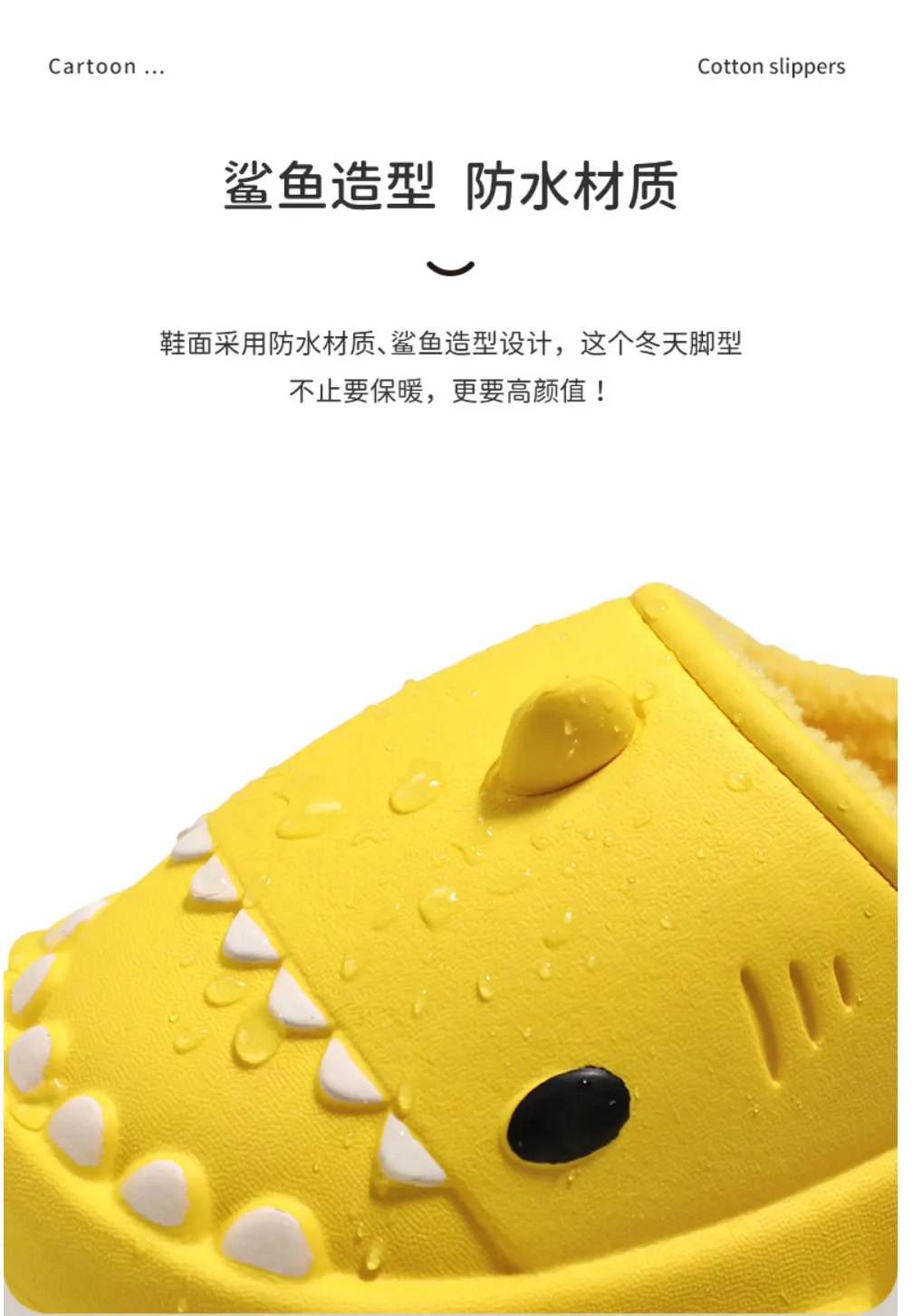 Зимние теплые женские меховые тапочки в форме акулы, водонепроницае...