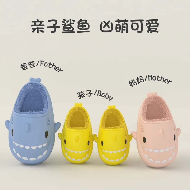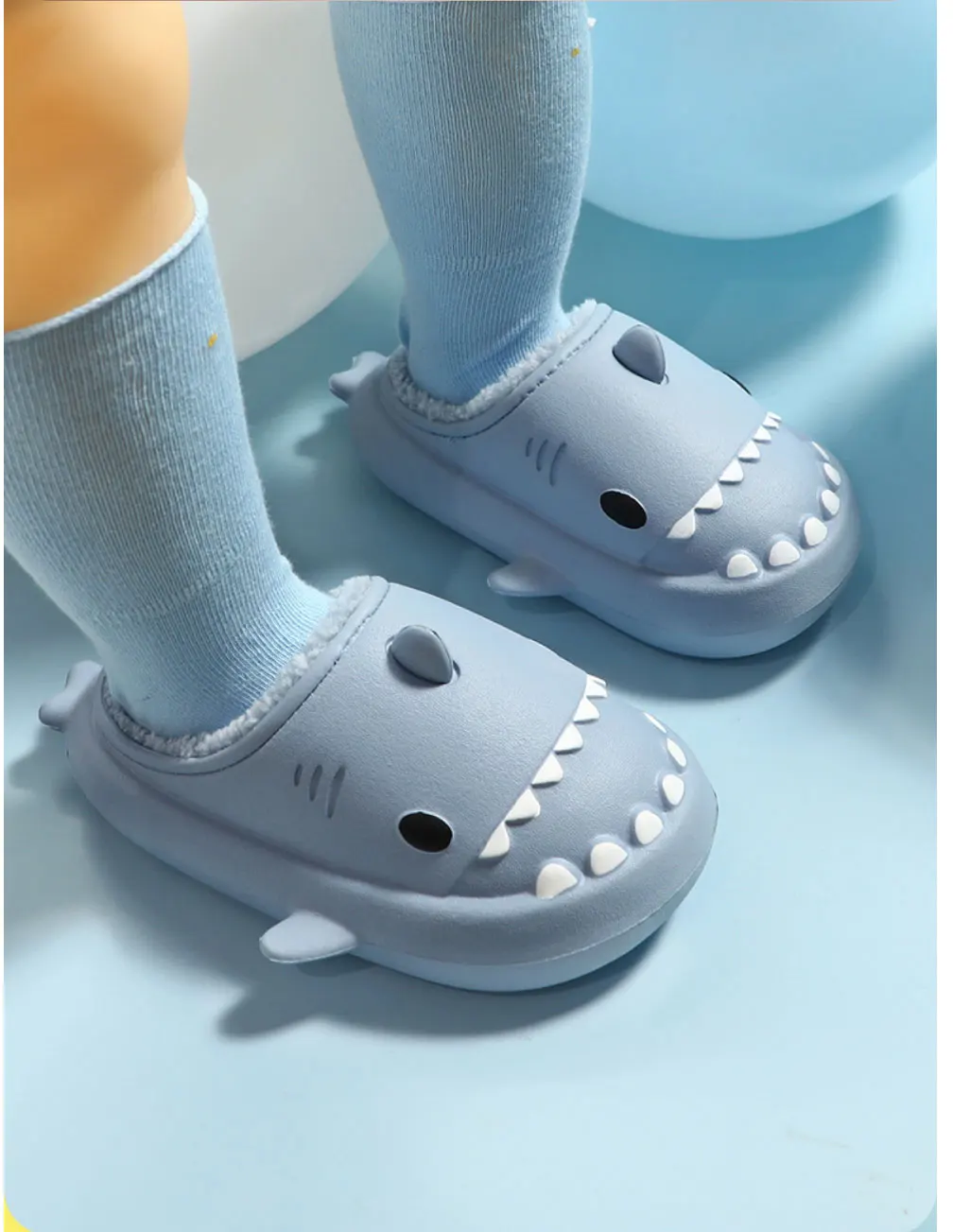 Теплые зимние тапочки для маленьких детей; Милая хлопковая обувь с рисунком акулы; Детские Водонепроницаемые шлепанцы с меховой подкладкой для мальчиков и девочек