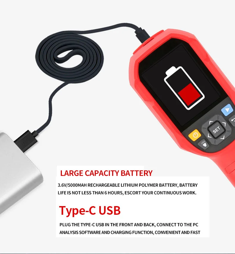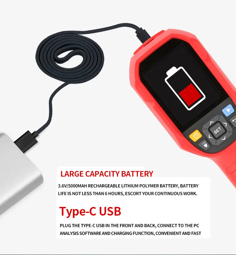 UNI-T UTI120B 120x90 пикселей тепловизор для ремонта инфракрасная камера термометр Термографическая камераПродукция серии UTI120 отличается прочностью и эргономичным дизайном тепловизора с отличной производительностью. Он принимает детектор UFPA, чтобы обеспечить превосходное инфракрасное разрешение и множество режимов палитры. Некоторые модели имеют функции визуальный светильник, звуковой сигнал и передачу изображения в реальном времени, что удобно для различных приложений.Особенности● 2,8 "TFT экран● Инфракрасное Разрешение: 120x90● Диапазон измерения температуры: -10 ℃ ~ 400 ℃● Функция фотографии с SD картой памяти● Программное обеспечение для анализа ПК● Звуковой сигнал/световой сигнал● Передача изображения в реальном времени● Автоматическое улавливание высокой/низкой температуры● Фонарик● Крепежное отверстие для штатива 1/4"● Защита от падения IP65/2 мПараметр