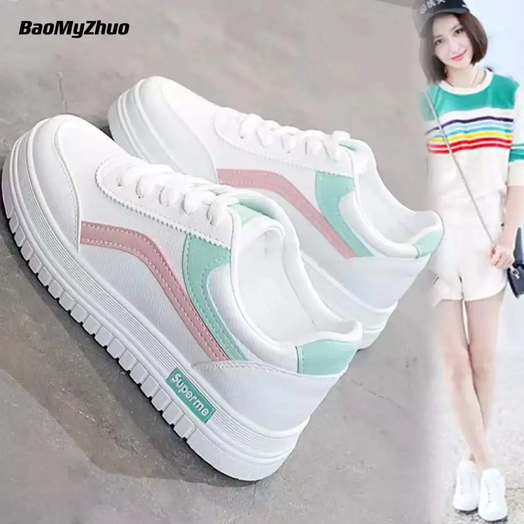 Кроссовки женские на платформе, Вулканизированная подошва, дышащие, прогулочная обувь, повседневные, белые, весна 2022