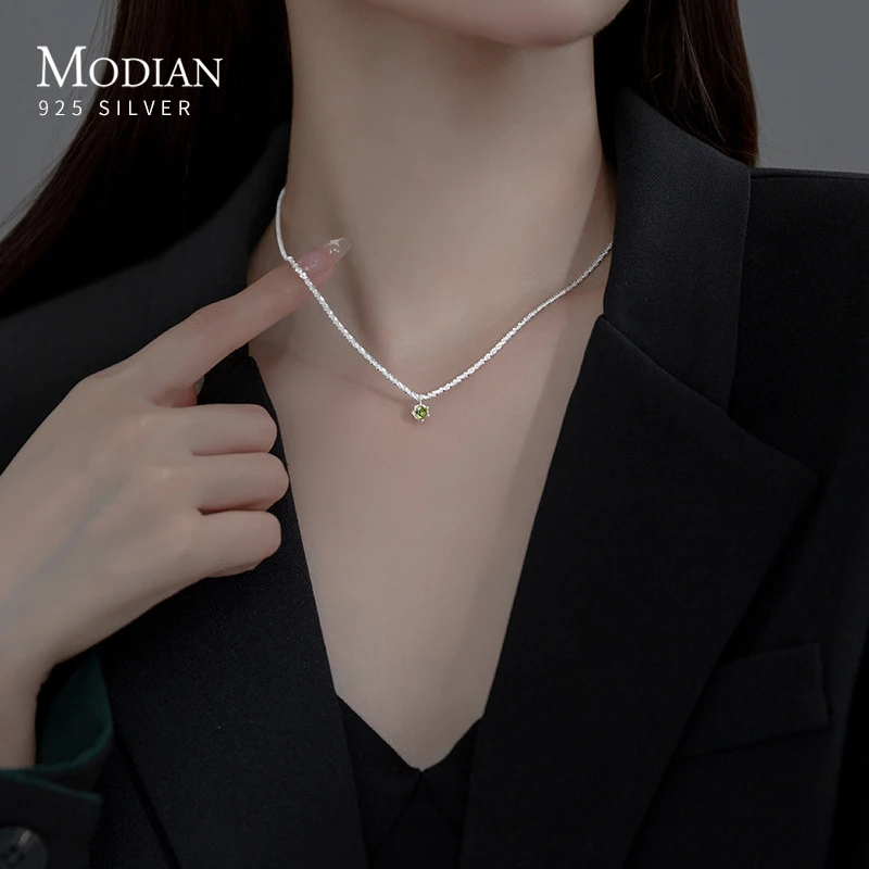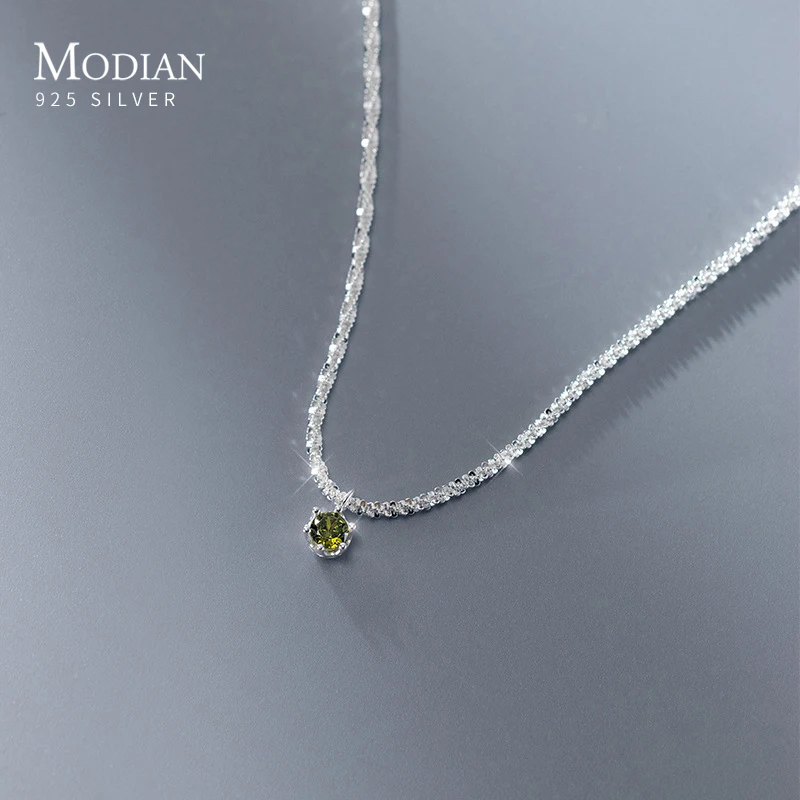 Цепочка MODIAN с кулоном женская из серебра 100% пробы, чокер со сверкающим оливковым и зеленым кубическим цирконием, изящное свадебное Ювелирное Украшение