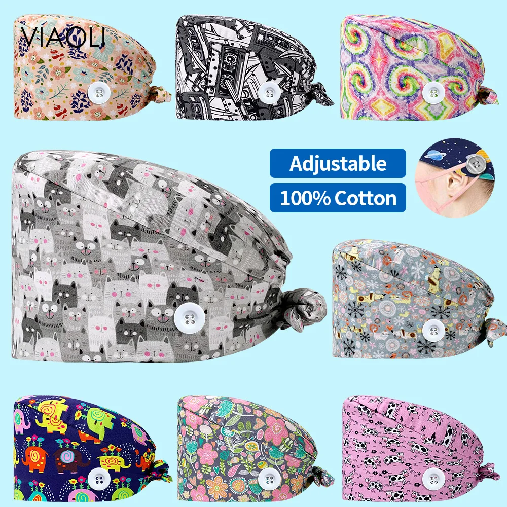 Шапка для медсестры с цветочным узором, регулируемая шапка с разным...