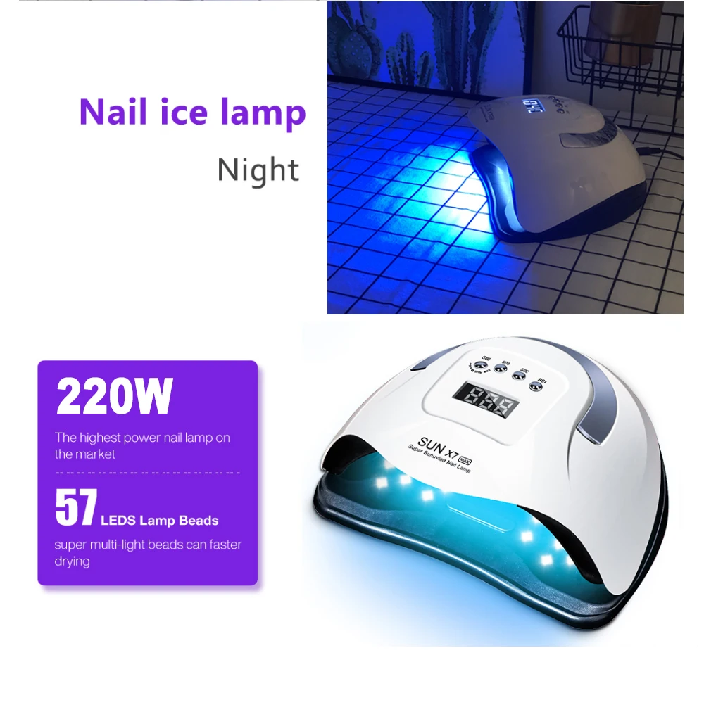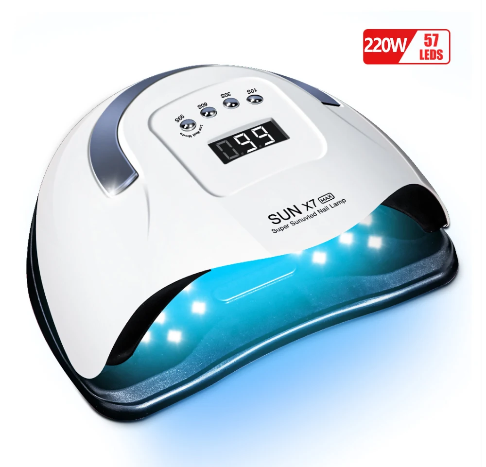 Режим: SUN X7 MaxСветодиодный: 57 УФ-светодиодныйМощность: 220 ВтРазмеры: 22,5*19,5*9,5 см4 режима: 10 / 30 / 60 / 99s (низкое тепловыделение)Тип функции: 9 мощных функцийПосылка: лампа для ногтей + вилка + руководство по эксплуатацииДоставка: отправка заказов в течение 24 часов