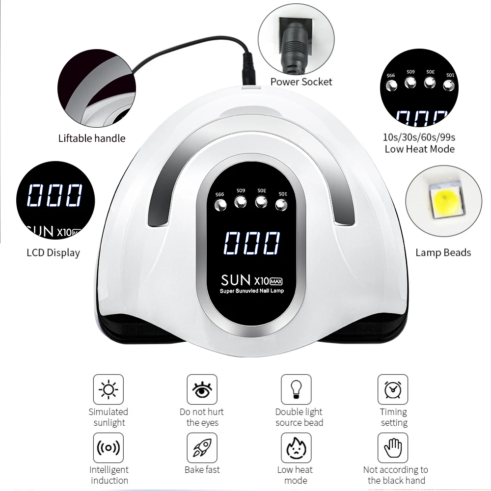SUN X10 Max УФ светодиодная лампа для ногтей для акриловой лампы для сушки геля для ногтей с режимом низкой температуры Smart Sensor Nail Art Salon Маникюрная сушилка