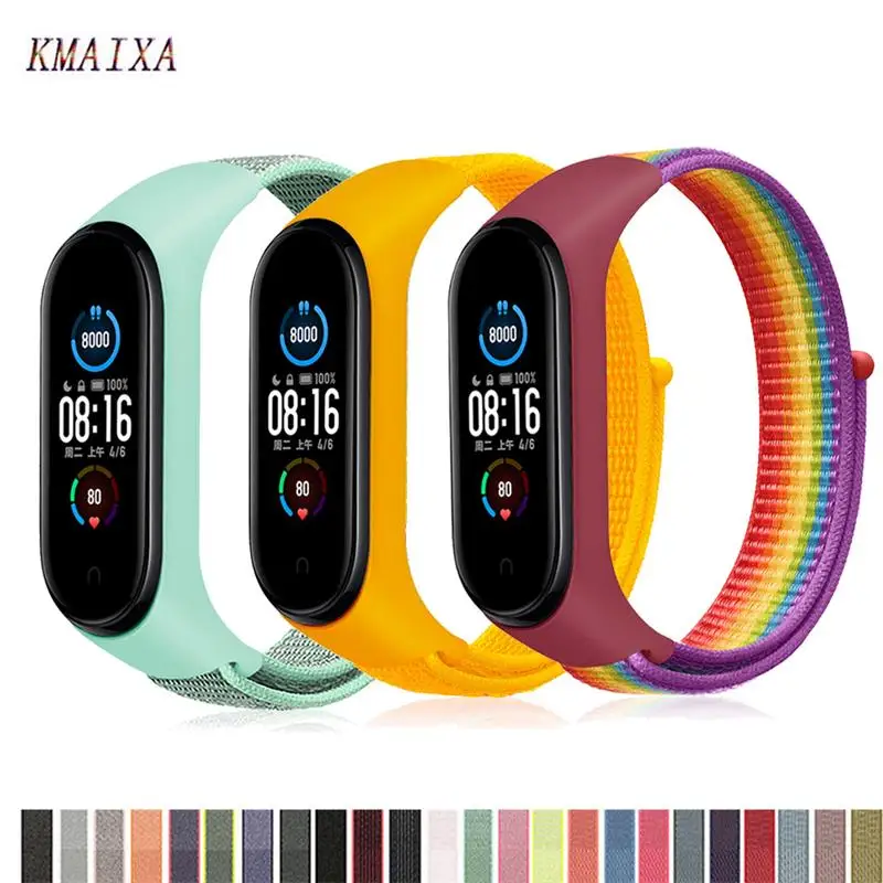 Браслет нейлоновый для Xiaomi Mi Band 5 6 3 4, женский ремешок для ...