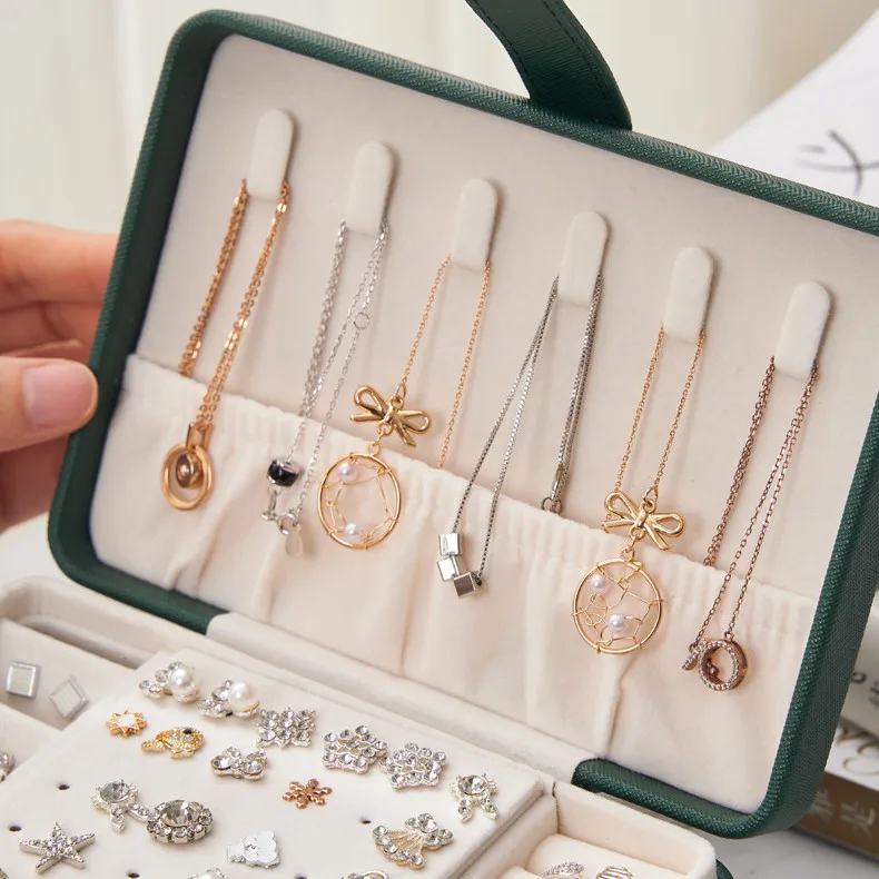 Женская двухслойная шкатулка для ювелирных изделий, практичный зеле...