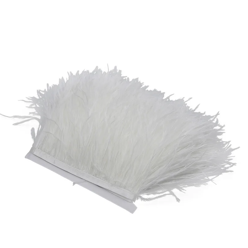 Лента с бахромой и натуральными страусиными перьями, 8-15 см