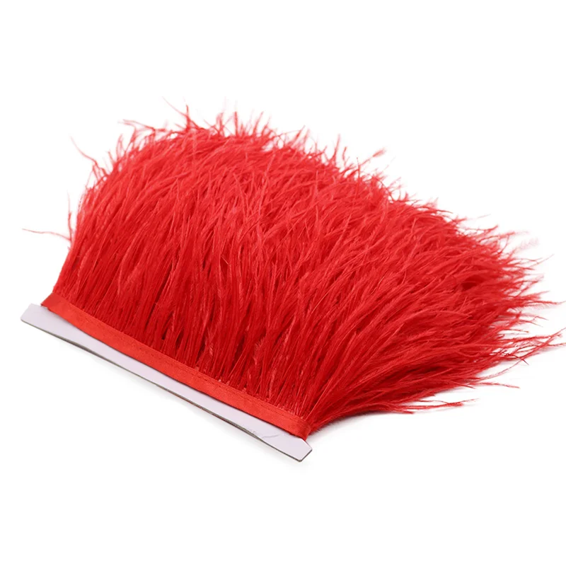 Высококачественные красные страусиные перья, отделка, кружево с бах...