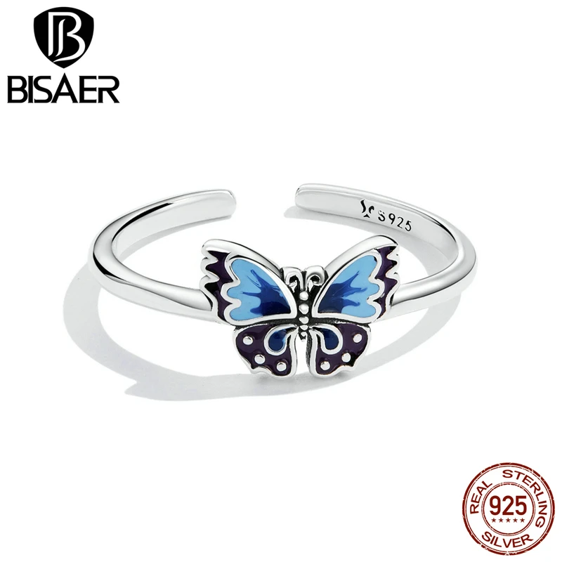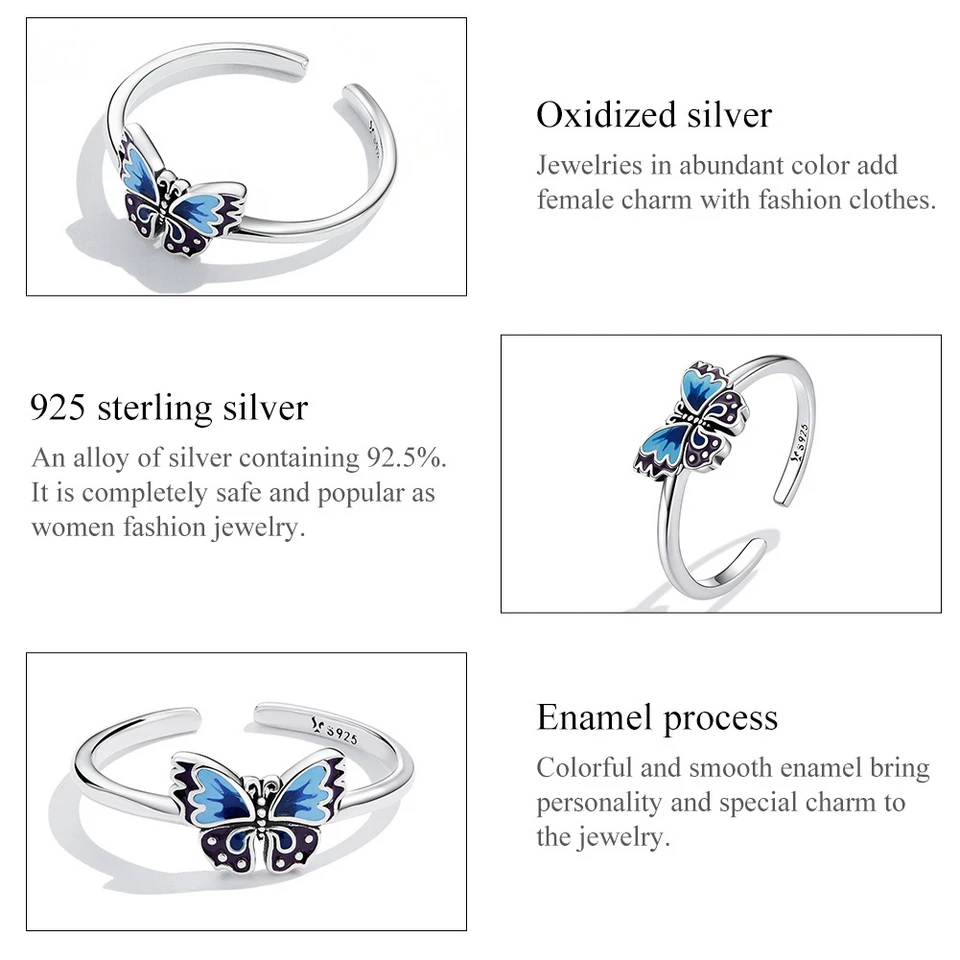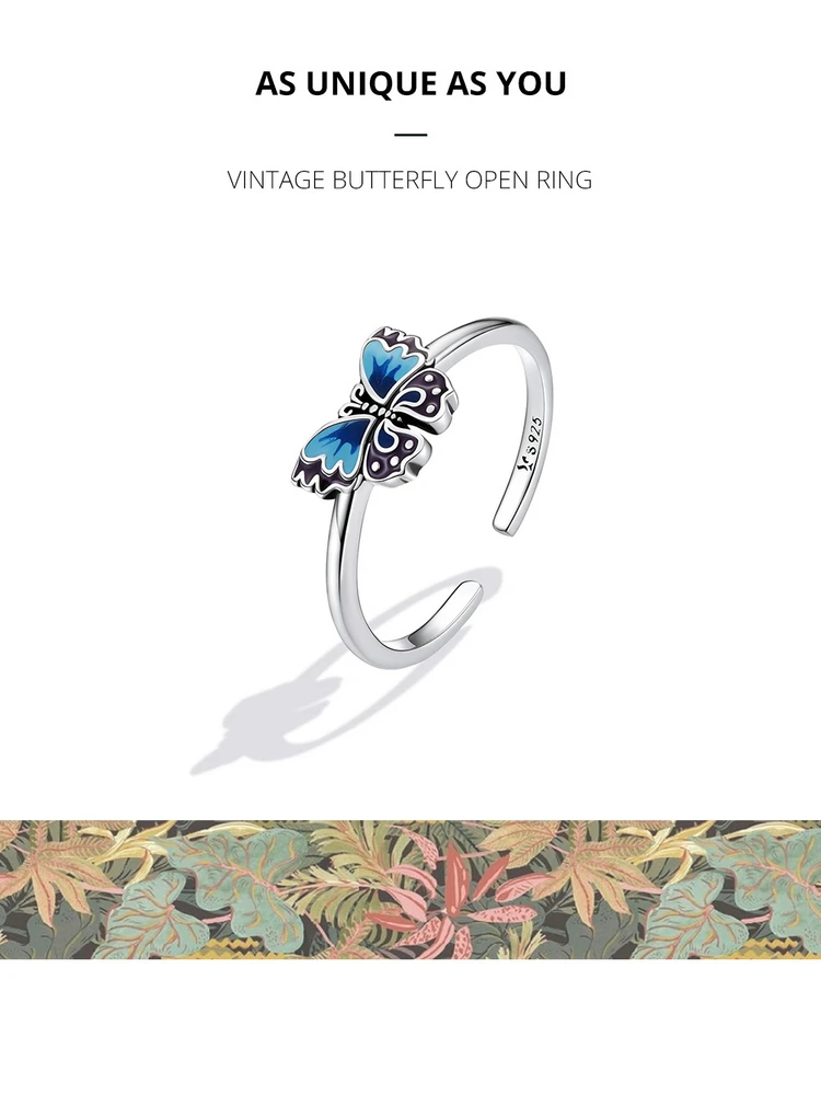Женское винтажное Открытое кольцо из серебра 925 пробы с синей бабочкой