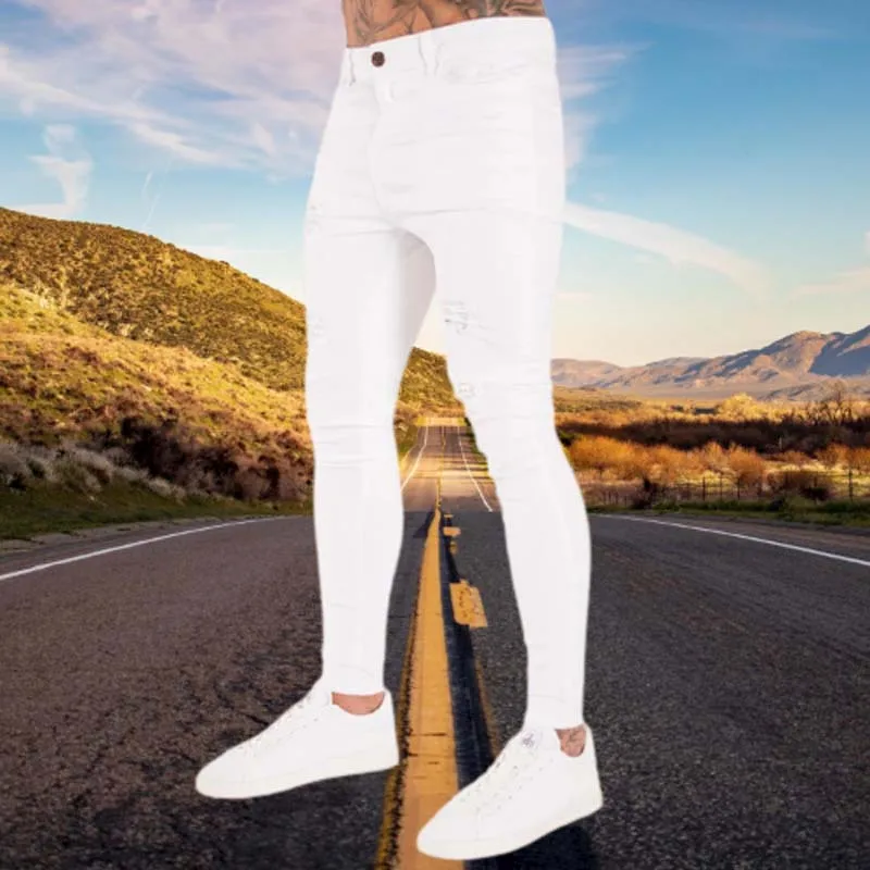 Мужские рваные джинсы, эластичные однотонные брюки-карандаш на молнии с планкой, весна-лето 2022