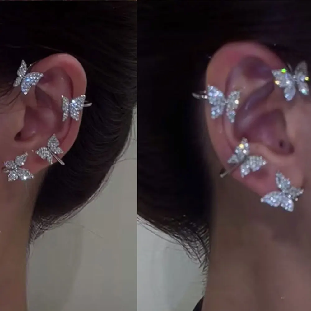 1 шт. сверкающие хрустальные зажимы-Бабочки Для Пирсинга Ушей без подделки завитка ушной раковины серьги-манжеты без поддельных элементов