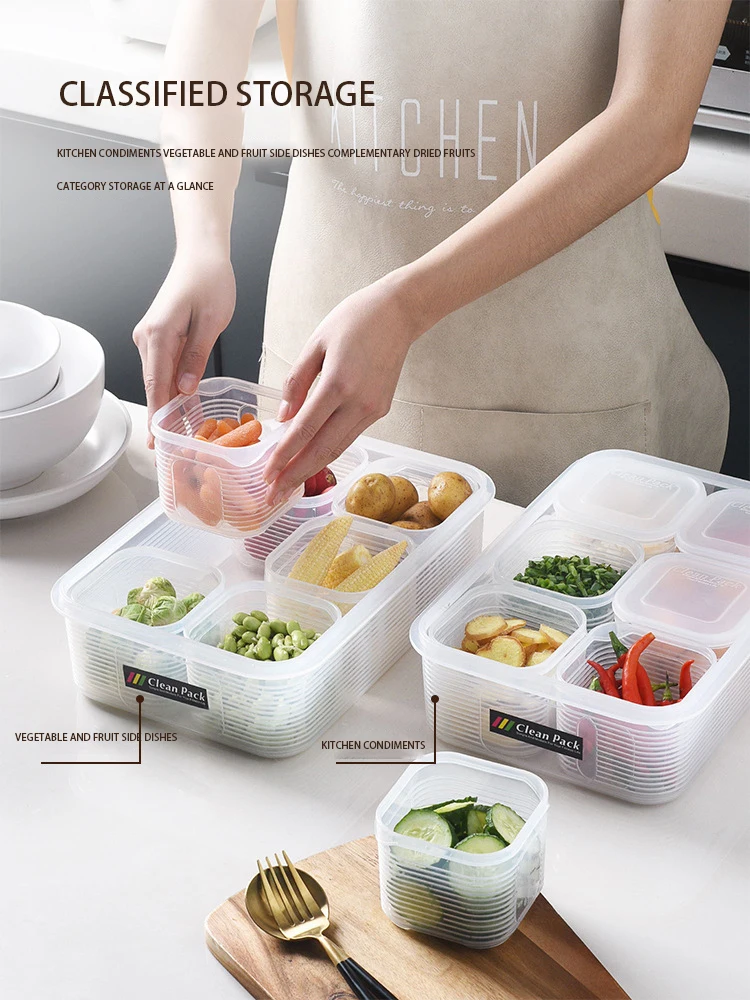 Холодильник, пластиковая коробка для хранения с крышкой, микроволновая печь, кухонные контейнеры для фруктов, отдельные коробки для ланча, костюм, кухонные аксессуары