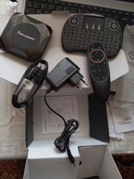 Во-первых, спасибо за сервис: как только написала в чат и попросила русскую клавиатуру, то человек моментально подтвердил. Во-вторых, продукт мне нравится: В моём комплекте шла сама коробочка 4/64, блок питания к ней от 220В, кабель HDMI который даже рабочий - большое спасибо!, плюс тач-клавиатура и аэро-мышь. - коробок включился сразу и без ошибок, Wi-Fi тоже сразу и без проблем - клавиатура и аэромышь подсоединились без проблем