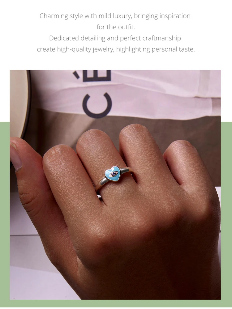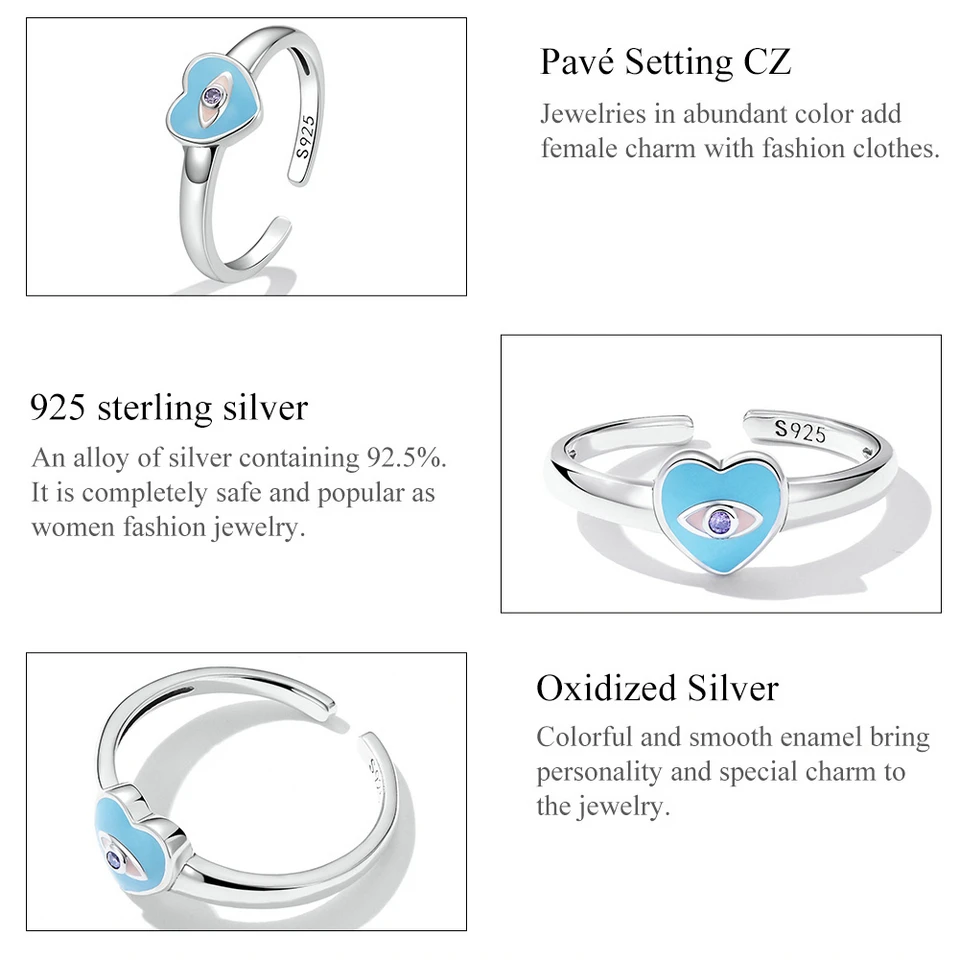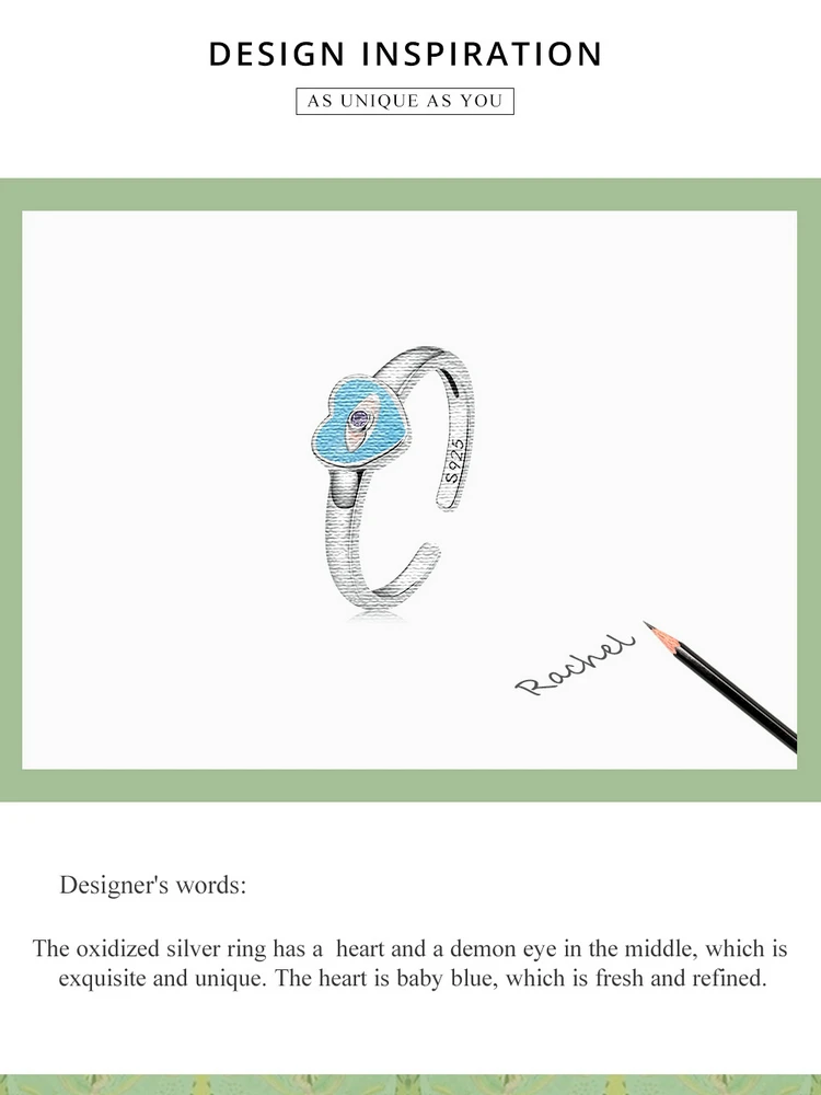 ❤[Опишите] окисленное серебряное кольцо имеет сердце и демон глаз в середине, который является изысканным и уникальным. Сердце голубого цвета, свежий и изысканный.❤[Материал] 925 пробы серебристого и эмалевого процесса и окисленного серебра, этот серебряный шарм не содержит никель, не содержит свинец, не содержит кадмия, гипоаллергенен. Гарантия качества, приятный для кожи, удобный и удобный в носке, не вредный для здоровья.❤[Мастерство]:S925 + эмаль процесс + паве установка CZ + окисленное серебро❤[Параметры]: Ширина: 0,2-0,3 см, размер: 0,7*0,7 см❤[В подарок] 1 шт. серебряное кольцо 925 пробы и Подарочный мешочек, который является идеальным подарком.