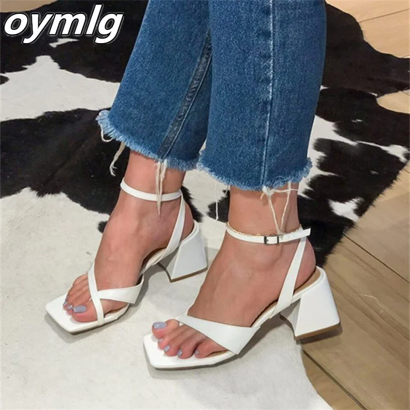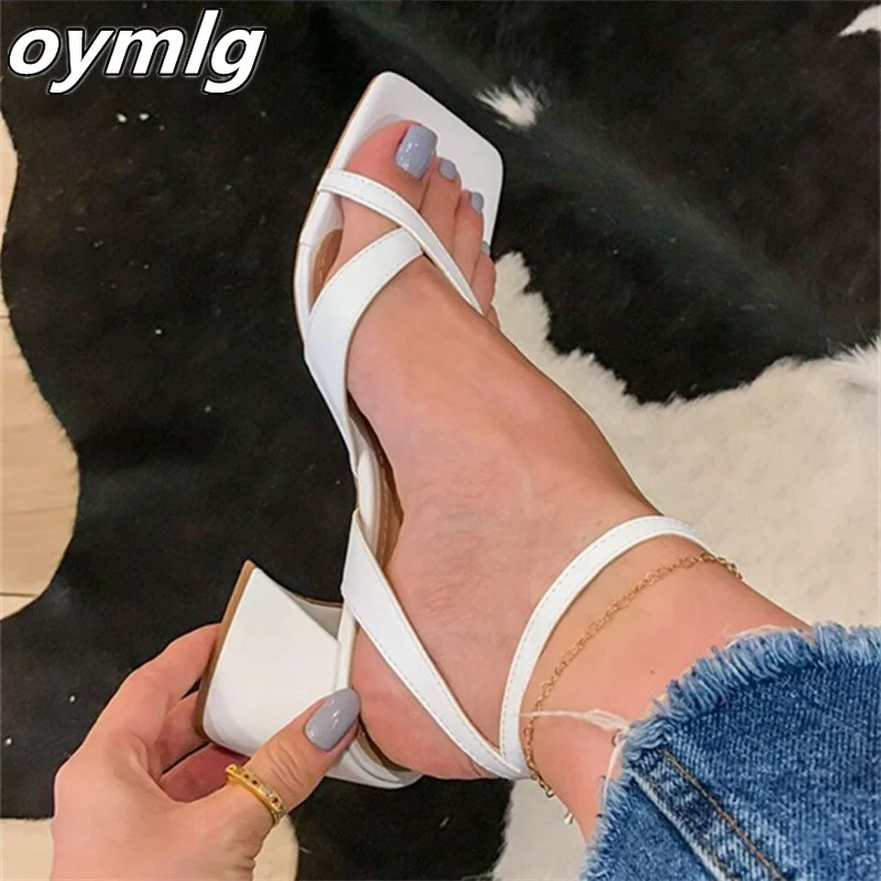 Женские сандалии на толстом каблуке, Новинка лета 2022, шлепанцы на высоком каблуке, женские сандалии с квадратным носком большого размера