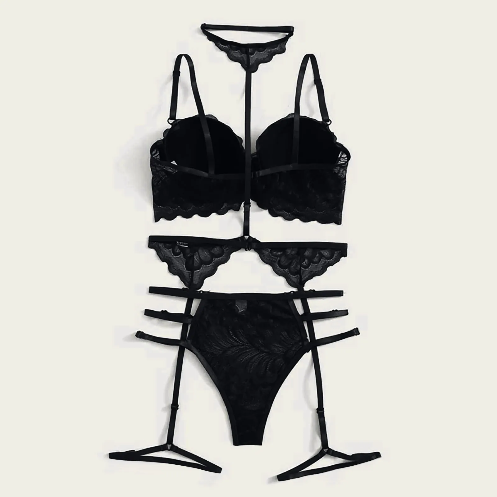 Комплект женского кружевного нижнего белья, с подвязками пуш-ап