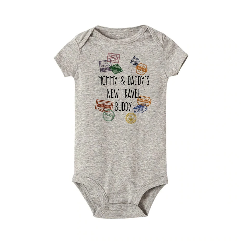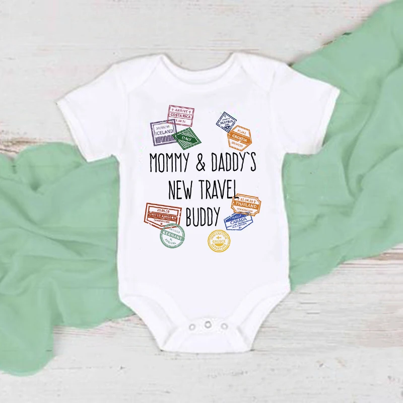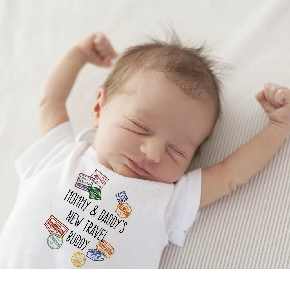 Новое боди для мамы и папы, для путешествий, для малышей, забавный детский комбинезон для младенцев, для путешественников, паспортные штампы, принт, подарок для новорожденных