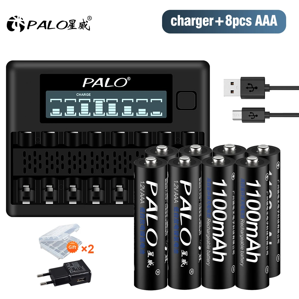 Аккумуляторная батарея PALO 1,2 в AAA 1100 мАч AAA Ni-MH батарея для беспроводного телефона клавиатуры игрушки + 8 слотов ЖК смарт-зарядное устройство