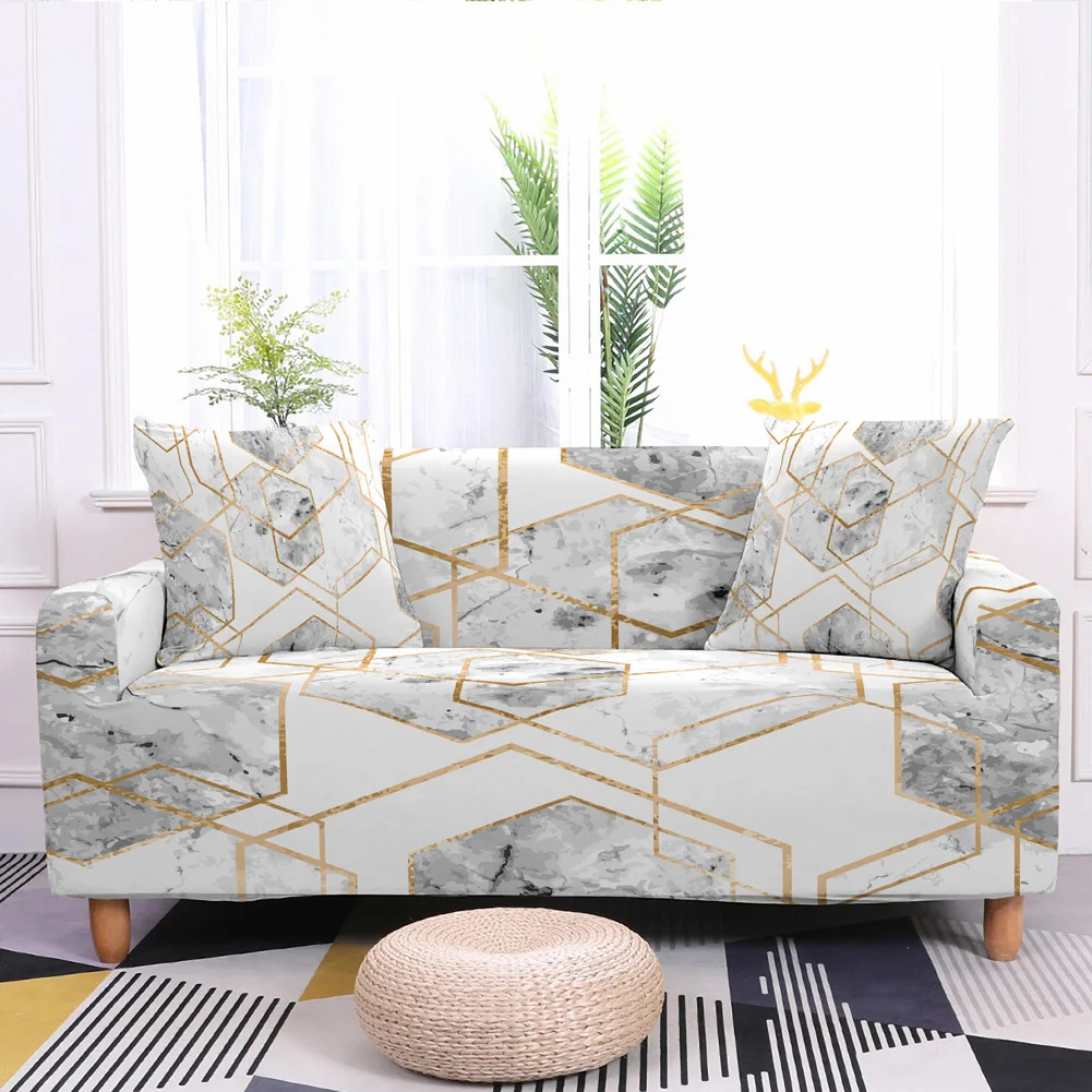 Эластичный чехол для дивана в гостиную, 3D чехол с геометрическим мраморным принтом, чехол для дивана, угловой чехол для дивана, украшение для дома