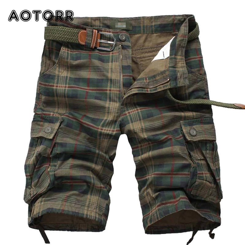 Шорты мужские пляжные в клетку, армейские штаны-карго в стиле милитари, хлопковые свободные брюки-бермуды, комбинезон, большие размеры 44, на лето