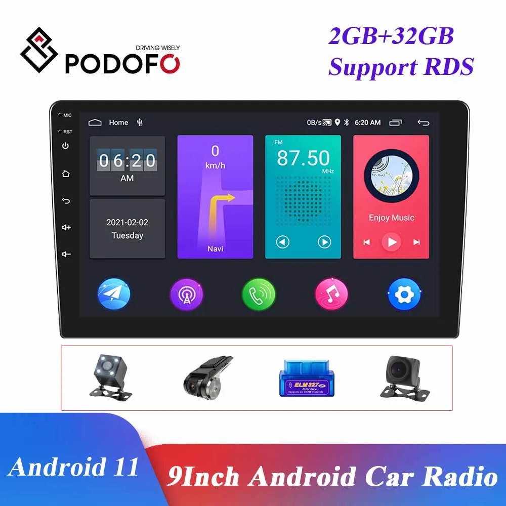 Автомагнитола Podofo, мультимедийный плеер на Android, с 9 "экраном, GPS, AHD камерой, для VW Toyota Nissian Kia Hyundai, типоразмер 2 Din