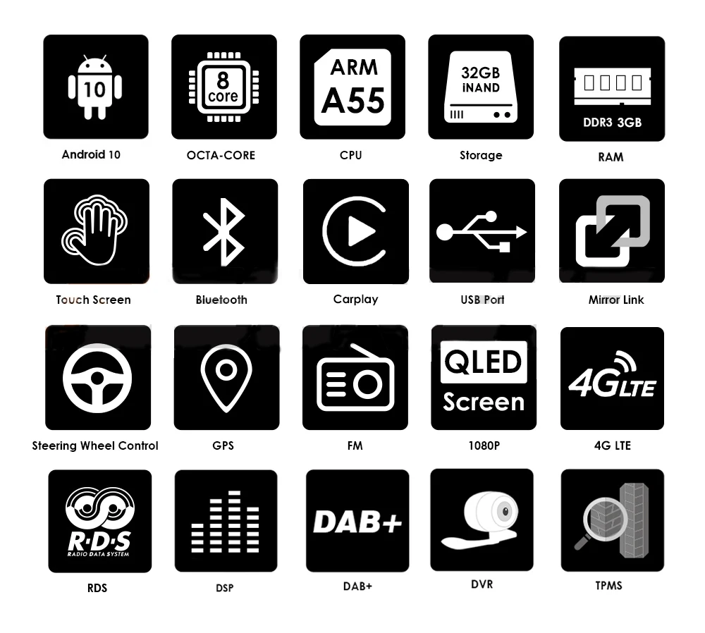 Автомобильный мультимедийный плеер с GPS, 4 ГБ, 64 ГБ, Android 10 д...